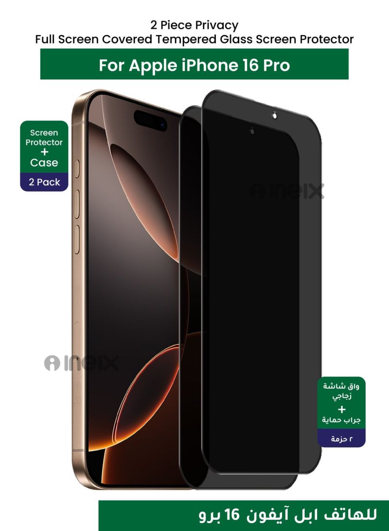 2-Piece Privacy Full Screen Tempered Glass Screen Protector For Apple iPhone 16 Pro