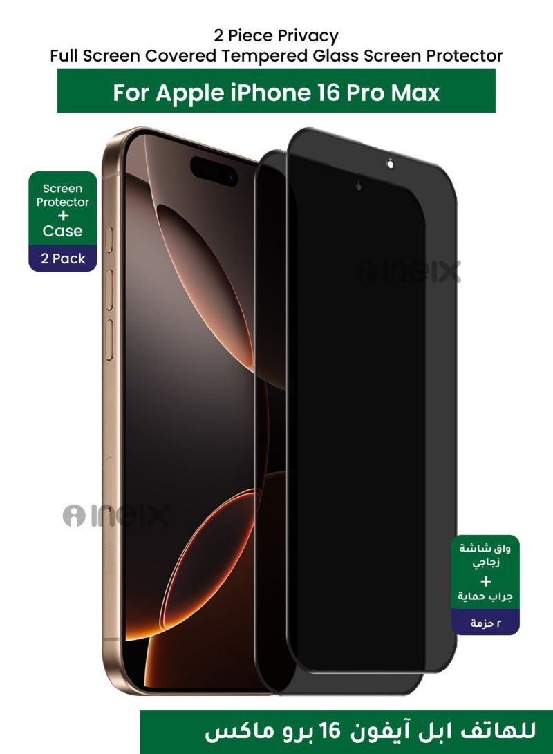 2-Piece Privacy Full Screen Tempered Glass Screen Protector For Apple iPhone 16 Pro Max