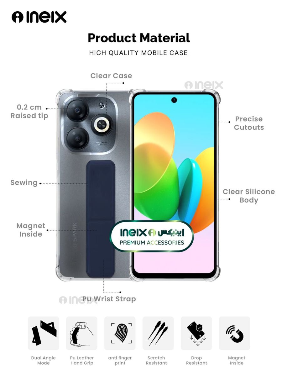 Elevate your mobile experience with the 3-in-1 Magnetic Hand Grip Stand Cover for Tecno Spark 20c. • Magnetic grip for secure one-handed use • Adjustable stand for hands-free viewing • Protective cover shields your device This versatile accessory transforms how you use your Tecno Spark 20c. The magnetic grip gives you total control, letting you easily snap photos, stream videos, and navigate apps with just one hand. When you need to go hands-free, the adjustable stand props up your phone at the perfect angle for comfortable viewing. And the durable cover guards against scratches, cracks, and other damage.
