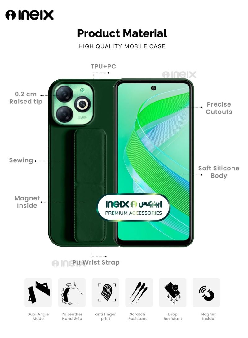 Elevate your Infinix Smart 8 experience with the ultimate 3-in-1 accessory! This Magnetic Wrist Strap Hand Grip Stand Cover is a game-changer for smartphone enthusiasts. • Magnetic wrist strap for secure, comfortable one-handed use • Sturdy hand grip stand for hands-free viewing and video calls • Protective cover to safeguard your device from scratches and drops Unlock the full potential of your Infinix Smart 8 with this versatile accessory. The magnetic wrist strap allows you to easily navigate your phone with just one hand, perfect for busy on-the-go moments. Transform it into a sturdy stand for hands-free viewing of videos, video calls, and more. And with the protective cover, you can rest assured your device stays safe from everyday wear and tear.