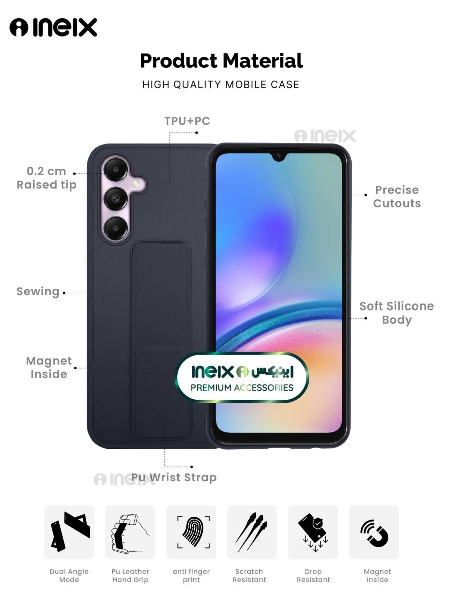 Hands-free convenience at your fingertips. The 3-in-1 Magnetic Wrist Strap Hand Grip Stand Cover for Samsung Galaxy A05s is the ultimate accessory for seamless smartphone use. Magnetic wrist strap for secure one-handed grip Adjustable stand for hands-free viewing Protective cover shields your device from scratches Never drop your phone again with the built-in magnetic wrist strap. Prop it up on any surface for comfortable viewing with the adjustable stand. And the protective cover keeps your Samsung Galaxy A05s looking sleek and new. This 3-in-1 accessory is a must-have for anyone who wants to use their phone with total confidence and convenience.