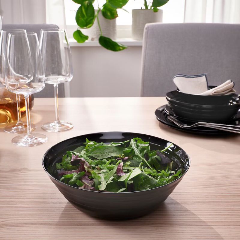 Black Serving Bowl – 22 cm – Elegant Water Ripple Design