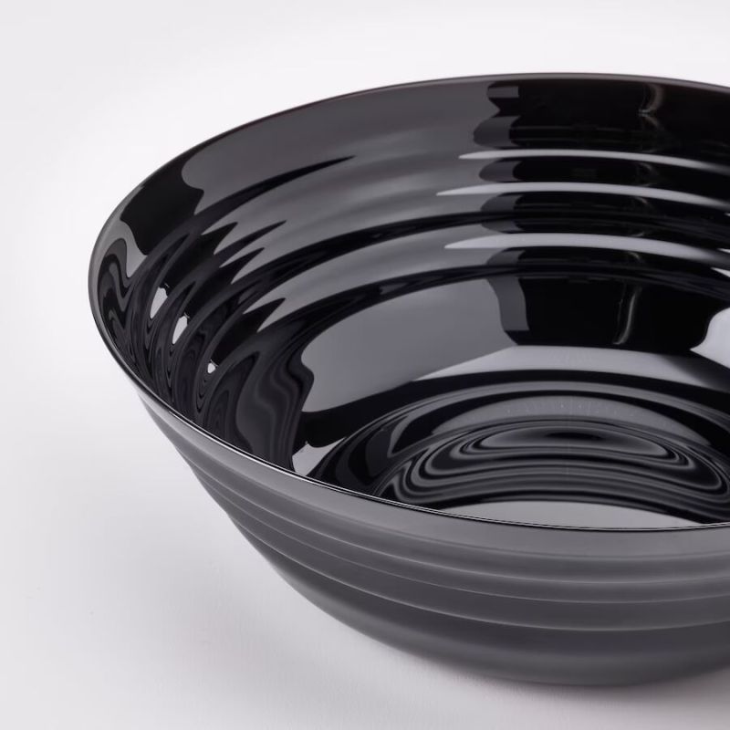 This stylish black serving bowl features a beautiful ripple pattern inspired by the spreading of water droplets. Made from durable tempered glass with a glossy opaque finish, it’s perfect for everyday meals. Dishwasher- and microwave-safe for easy cleaning and reheating.