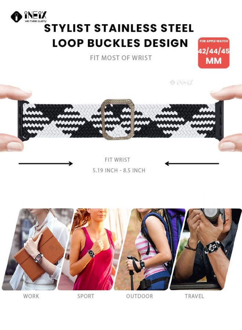 Braided Nylon Adjustable Solo Loop Band For Apple Watch 42mm, 44mm and 45 mm
