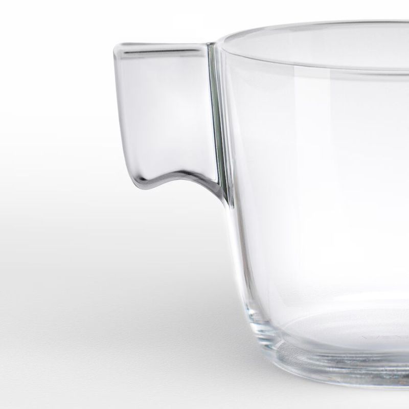 A durable and heat-resistant tempered glass mug, perfect for both hot and cold drinks.