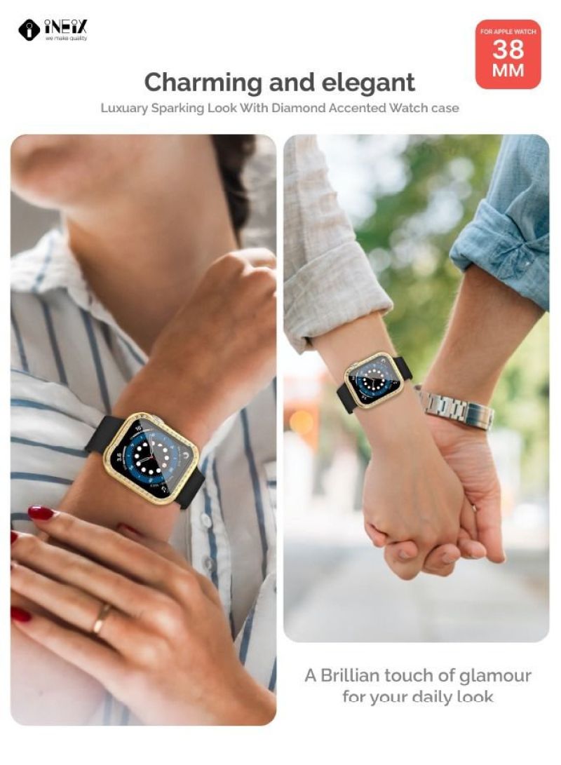 Elevate your Apple Watch style with the dazzling Diamond Accented Case. This stunning accessory transforms your timepiece into a showstopping piece of jewelry. Diamond-encrusted bezel for a brilliant, eye-catching look Durable protective case guards against scratches and dings Built-in screen protector shields your display from cracks and shatters Easy snap-on/snap-off design for quick installation The Diamond Accented Case is the perfect way to add a touch of glamour to your everyday wear. Elevate any outfit with the brilliant shine of genuine diamonds, while keeping your Apple Watch safe from life's wear and tear. This accessory is a must-have for fashion-forward Apple enthusiasts who want to stand out from the crowd.