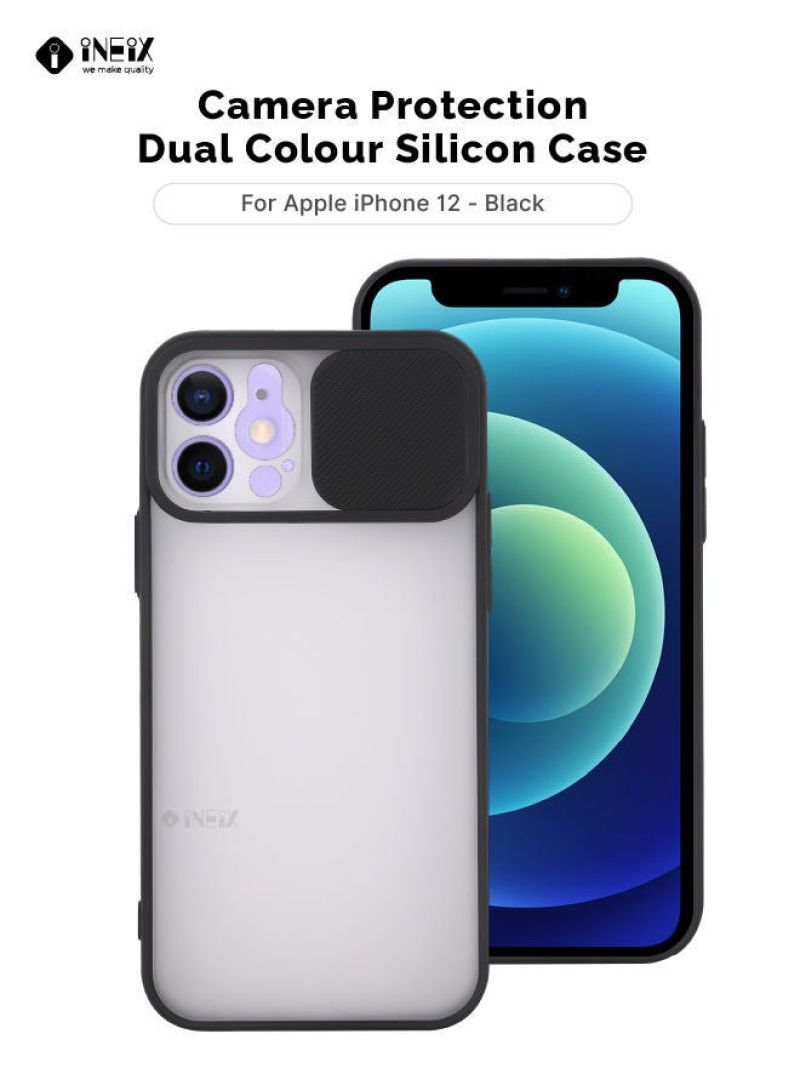 Dual Color Silicone Cover With Sliding Camera Protection For Apple iPhone 12