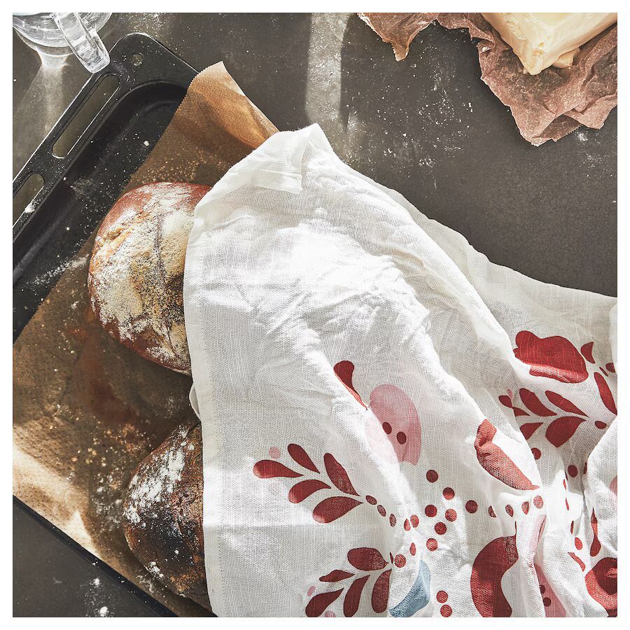 A soft and absorbent cotton tea towel with a floral pattern. Features a loop for easy hanging and is machine washable for convenience.