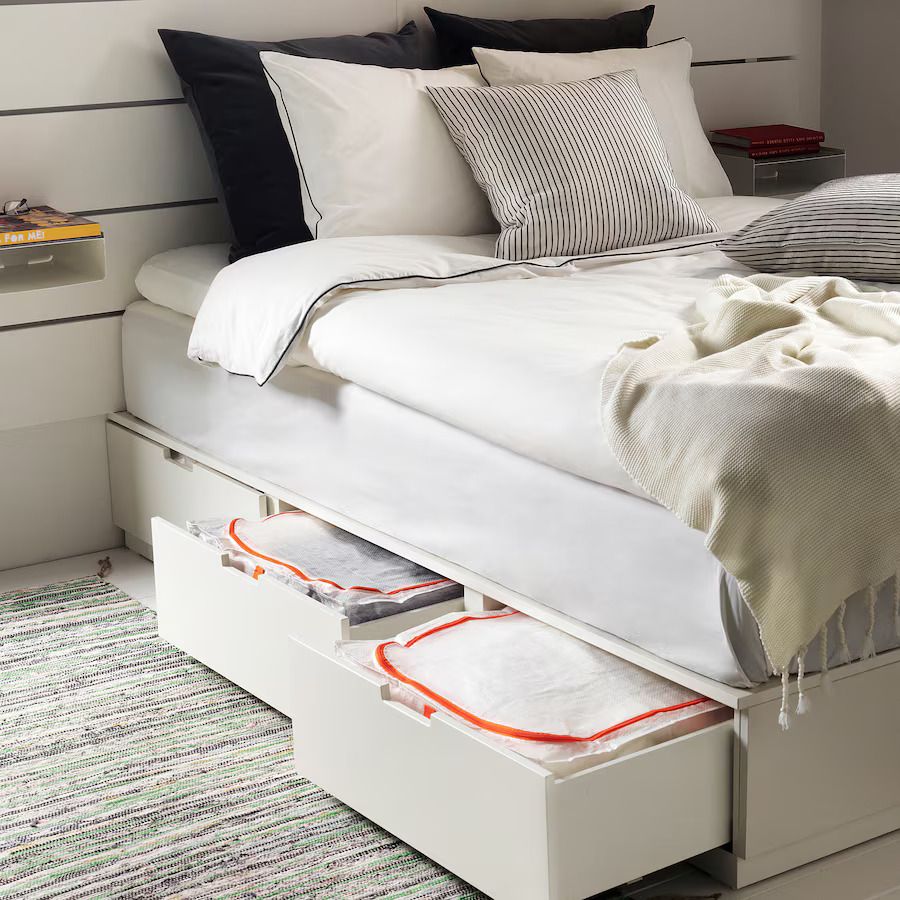 A spacious storage solution for seasonal clothes, duvets, and pillows. Keeps your items safe and neatly stored, and folds flat when not in use.