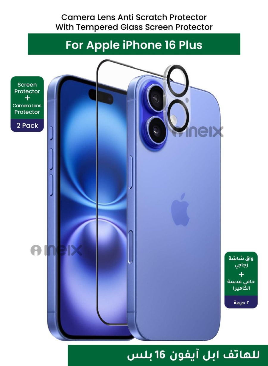 Full BodyTempered Glass Screen Protector with Camera Lens Anti Scratch Protector for iPhone 16 Plus