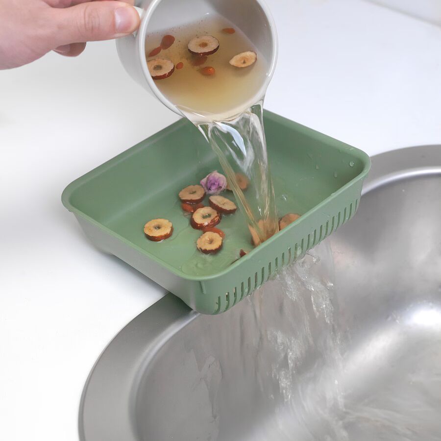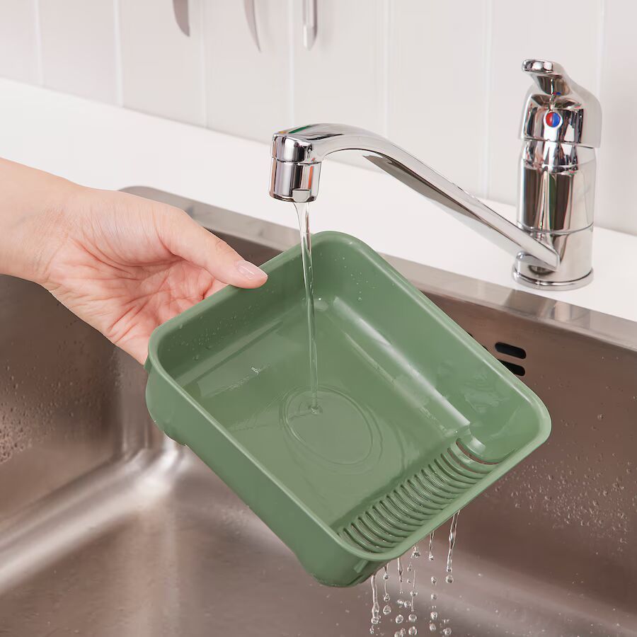 A practical and compact food waste strainer designed to keep your sink clean by preventing blockages. Can also be used as a storage basket for sponges and small kitchen utensils.