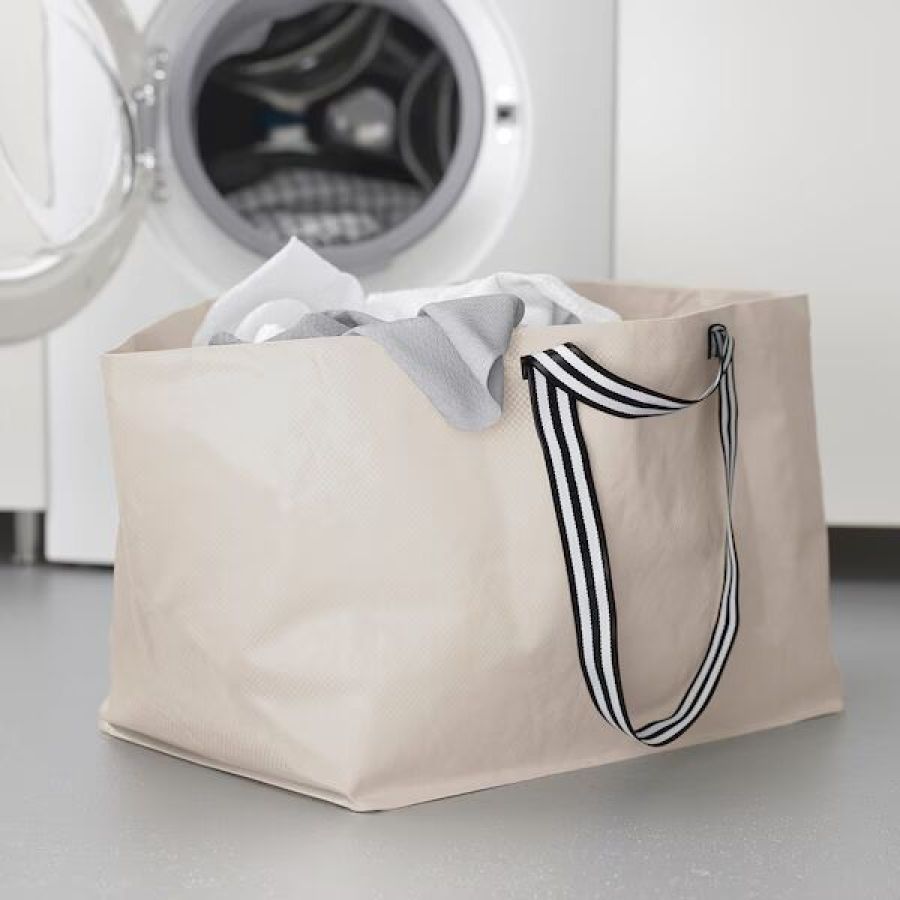 A spacious and durable carrier bag perfect for shopping, laundry, moving, or traveling. With striped handles in two lengths, it's both practical and stylish. Folds flat for easy storage.