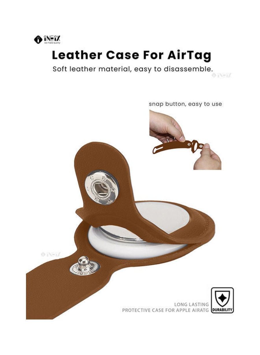 Never lose your AirTag again with this premium leather protective case. Crafted from high-quality, durable leather Securely holds your AirTag in place Includes a sturdy metal ring for easy attachment Available in classic black, brown, and tan This leather case is the perfect accessory to keep your AirTag safe and easily accessible. Whether you're attaching it to your keys, bag, or any other item, the reinforced design ensures your AirTag stays protected from scratches, drops, and everyday wear and tear. Never worry about misplacing your valuables again with this essential AirTag case.