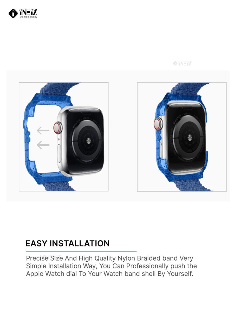 Elevate your Apple Watch with this dazzling nylon braided strap and glittering case combo! Soft, breathable nylon braid for all-day comfort Adjustable length to fit any wrist size Protective case shields your watch from scratches Shimmering design adds a touch of glamour Upgrade your Apple Watch from ordinary to extraordinary with this luxurious strap and case set. The braided nylon material is both stylish and breathable, keeping you comfortable all day long. And the sleek glittering case protects your investment, ensuring it stays looking brand new. Whether you're dressing up for a special occasion or just want to add a little sparkle to your everyday look, this accessory set is a must-have.