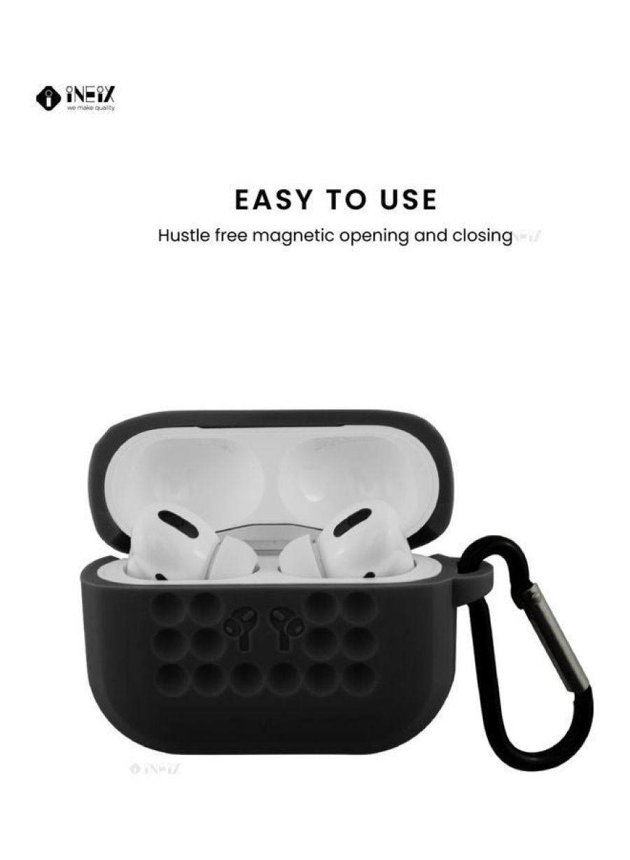 Durable silicone case shields your AirPods Pro from drops, scratches, and daily wear and tear Integrated carabiner clips easily to your bag, belt loop, or keychain so your AirPods are always within reach Precise cutouts allow full access to charging port and controls Stylish design complements your AirPods Pro Keep your precious AirPods Pro safe and secure no matter where your day takes you. This protective case with built-in carabiner ensures you'll never have to frantically search for a lost earbud again. Simply clip it to your bag or clothing and rest easy knowing your AirPods are safe and sound.