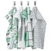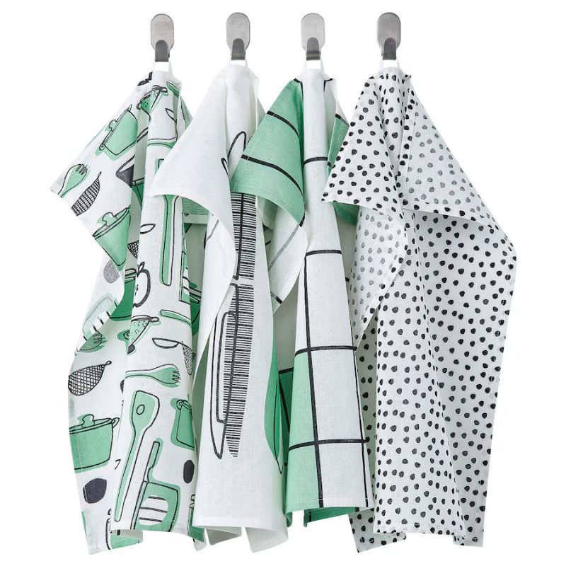 Set of 4 Cotton Tea Towels – White/Green, 45x60 cm