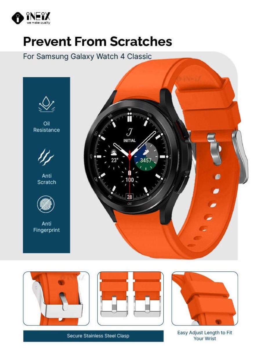 Elevate your Samsung Galaxy Watch 4 Classic with this premium silicone replacement strap. Comfortable, durable silicone construction Adjustable clasp for a secure, customized fit Sweat-resistant and waterproof for active lifestyles Available in a range of stylish colors to match your look Upgrade your smartwatch experience with this high-quality strap that combines form and function. The silicone material provides a soft, flexible feel that won't irritate your skin, even during extended wear. The adjustable clasp ensures a perfect fit, while the waterproof design means you can wear it confidently through sweat sessions, showers, and more. Elevate your Samsung Galaxy Watch 4 Classic with a strap that complements your personal style.