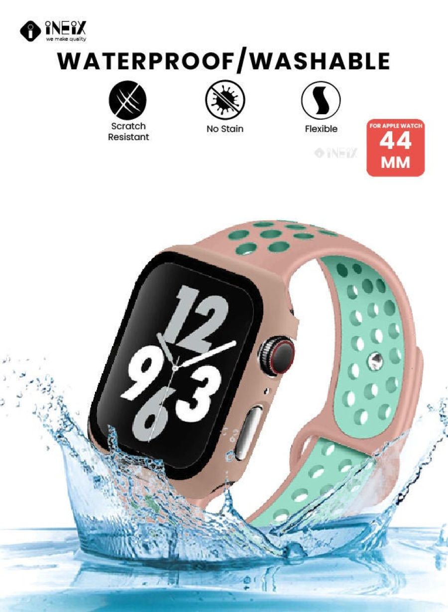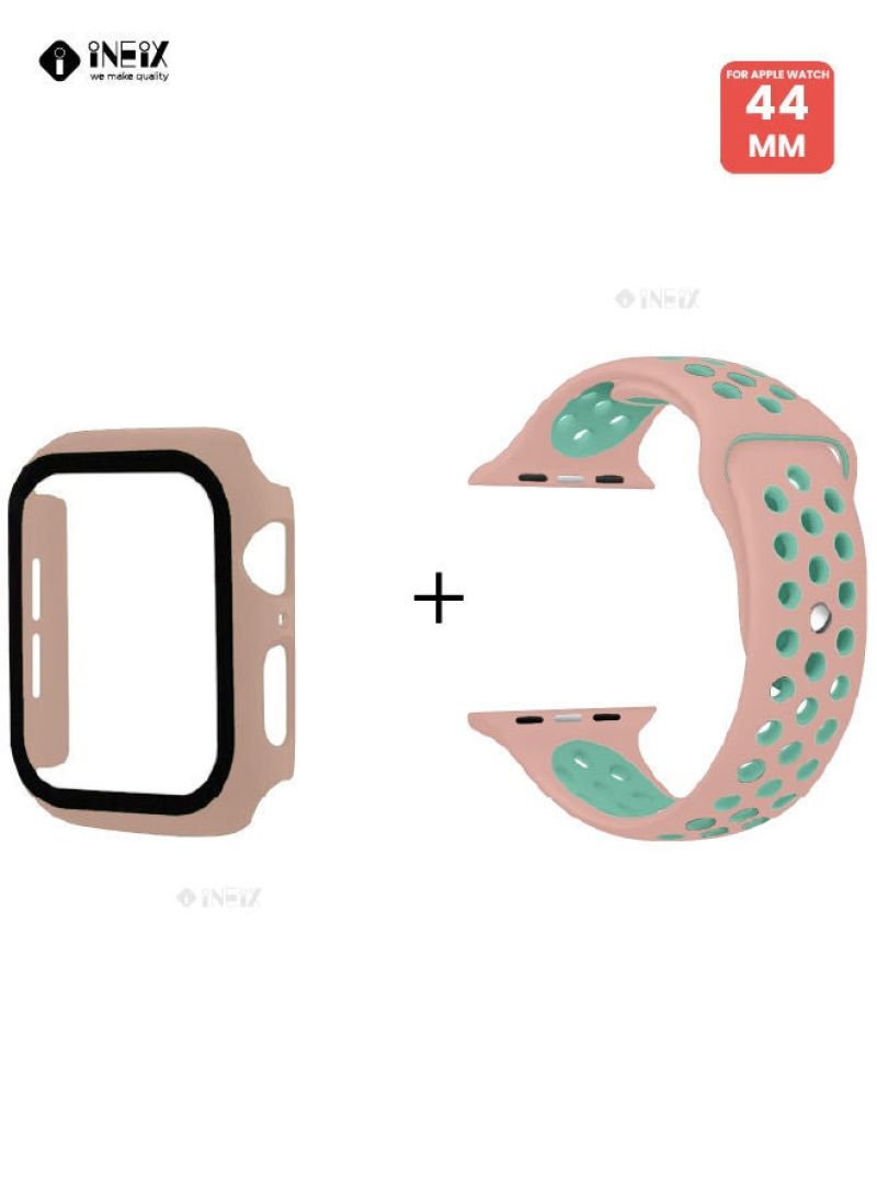 Silicone Sport Replacement Strap With Screen Protector And Case For Apple Watch 44 mm