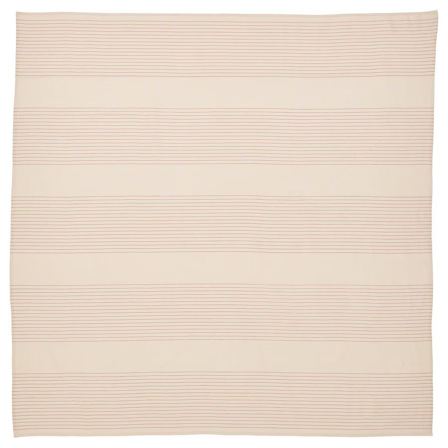 A stylish striped tablecloth made from 100% unbleached cotton, adding a natural and inviting touch to your dining space.