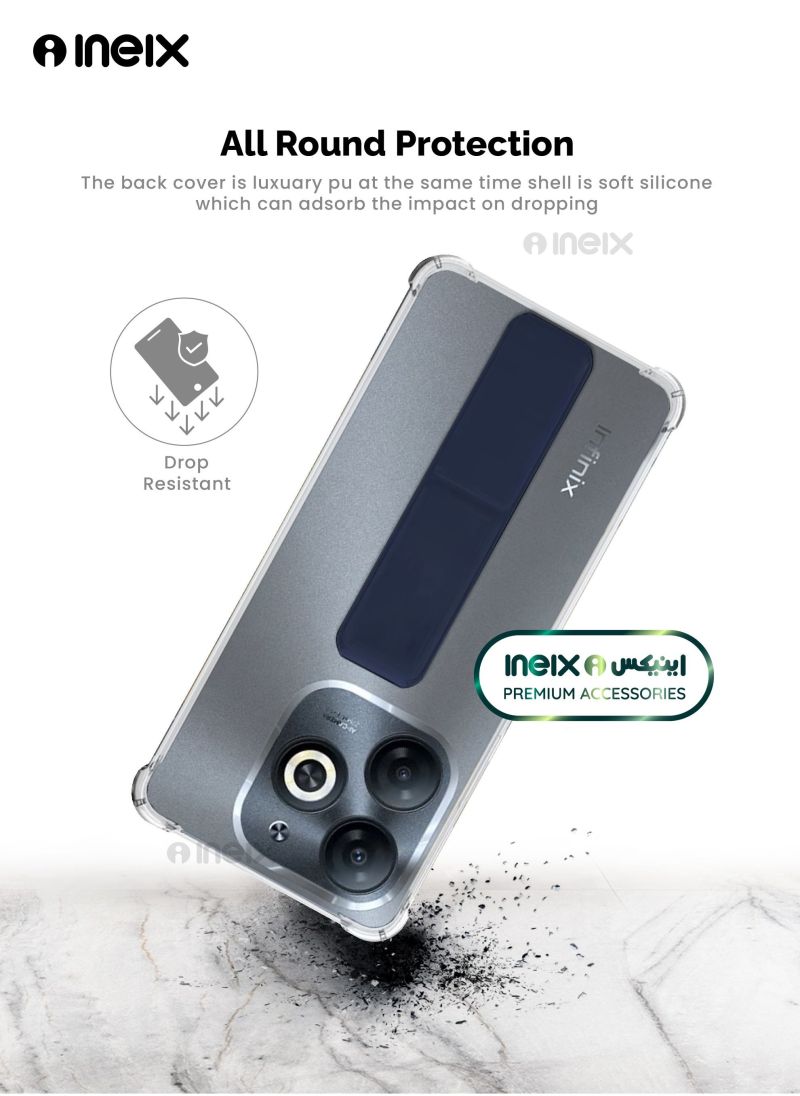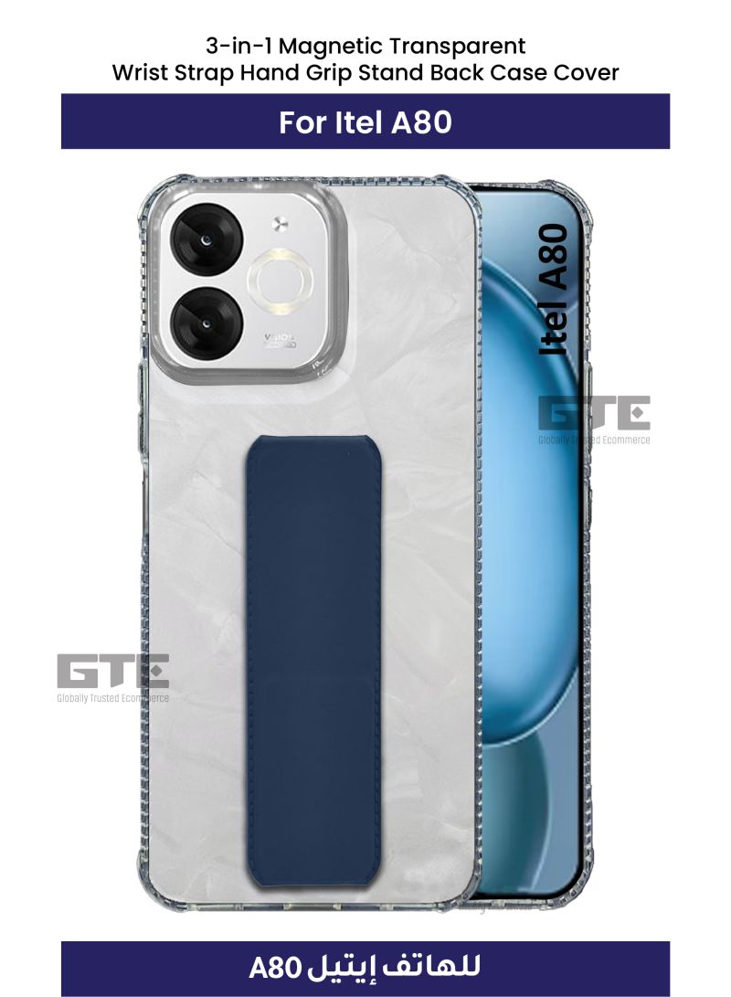 3-in-1 Magnetic Transparent Wrist Strap Hand Grip Stand Back Case Cover for Itel A80