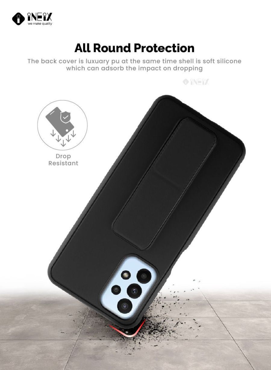 Never drop your phone again with this ingenious 3-in-1 magnetic grip case! • Secure magnetic grip for one-handed use • Kickstand for hands-free viewing • Shock-absorbing protection for drops and bumps Stop fumbling with your phone and take control with the 3-in-1 Magnetic Hand Grip Holder Case. The strong magnetic grip lets you easily hold your Galaxy A23 with one hand, perfect for snapping photos, scrolling social media, or watching videos. And when you need to go hands-free, simply flip out the built-in kickstand for seamless video calls or binge-watching. Durable construction guards against scratches, cracks, and shatters, so your phone stays safe even when life gets a little rough. Never worry about dropping your precious device again - get the 3-in-1 Magnetic Hand Grip Holder Case and enjoy a secure, convenient mobile experience.