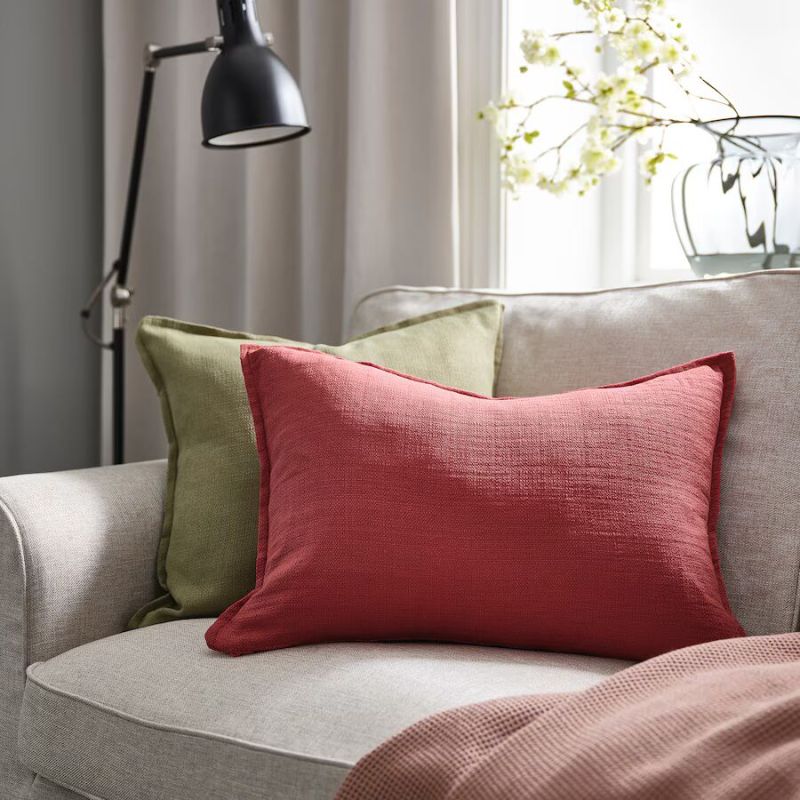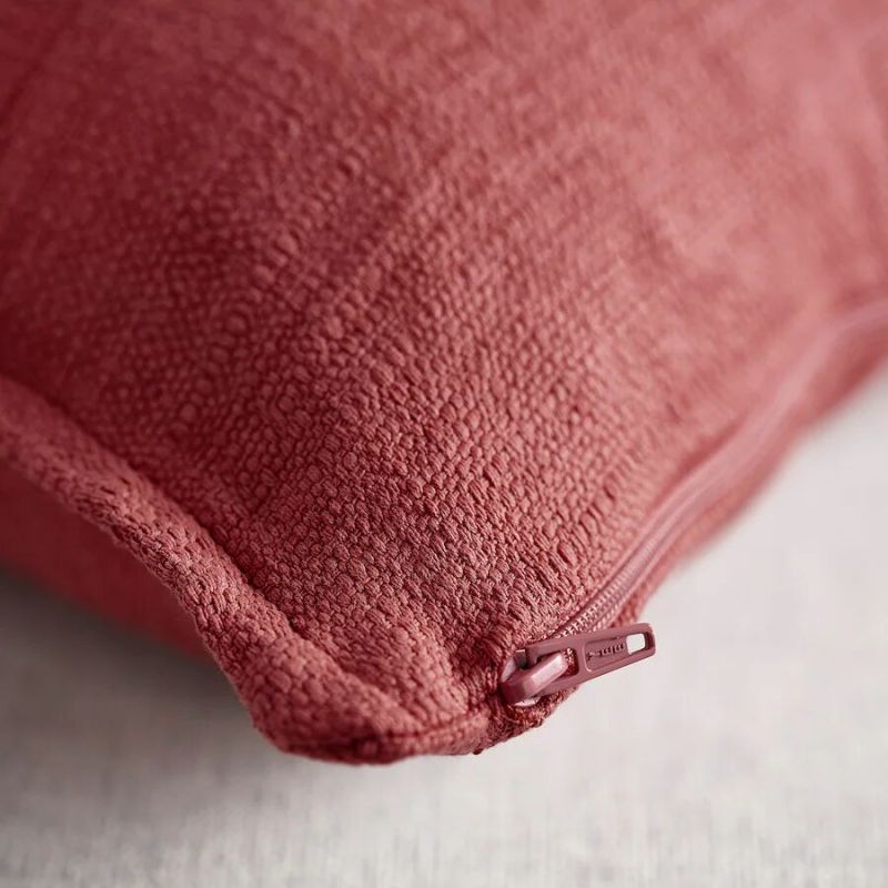 Enhance your home decor with this elegant cushion cover in pink-red. Featuring a textured matte sheen and flange edging, it adds both style and structure. Made from 100% recycled polyester, it's durable, easy to wash, and available in multiple colors and sizes.