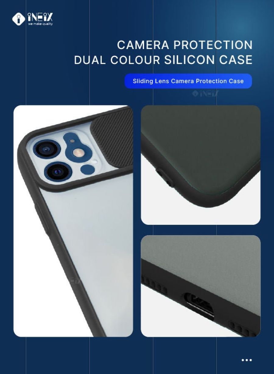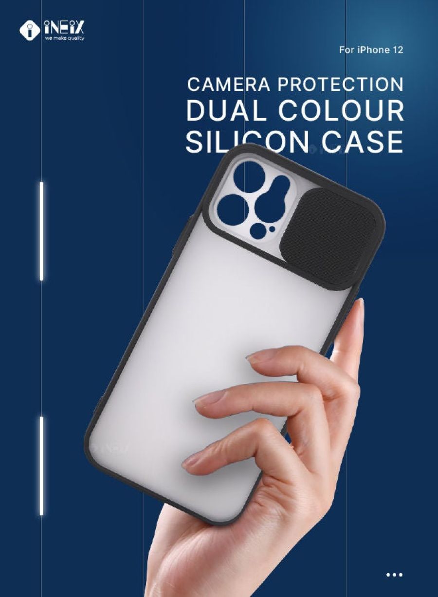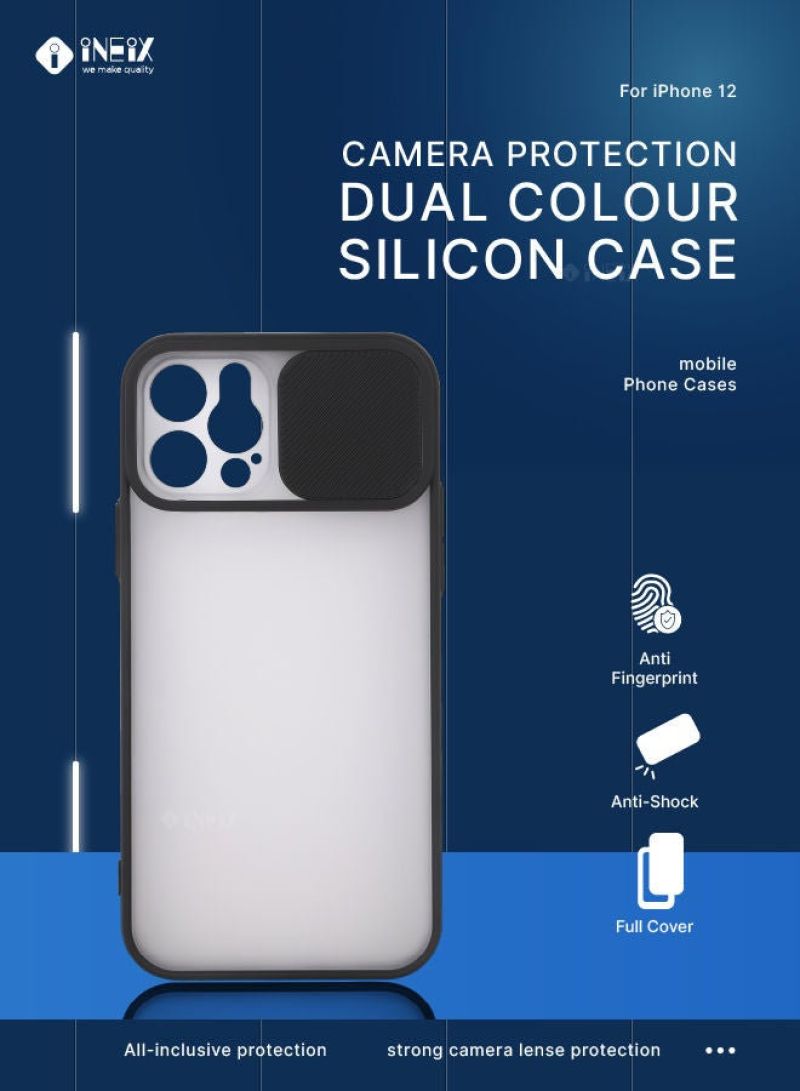 Elevate your iPhone 12 with our stylish and protective Dual Color Silicone Cover. • Dual-tone silicone design for a sleek, premium look • Sliding camera protection to keep your lens safe • Raised edges to guard against scratches and drops • Soft, non-slip grip for easy handling Protect your investment with this durable yet elegant iPhone 12 case. The silicone material absorbs shocks while the sliding camera cover ensures your precious lens stays pristine. Designed to complement your personal style, this cover makes a bold statement while keeping your device safe.
