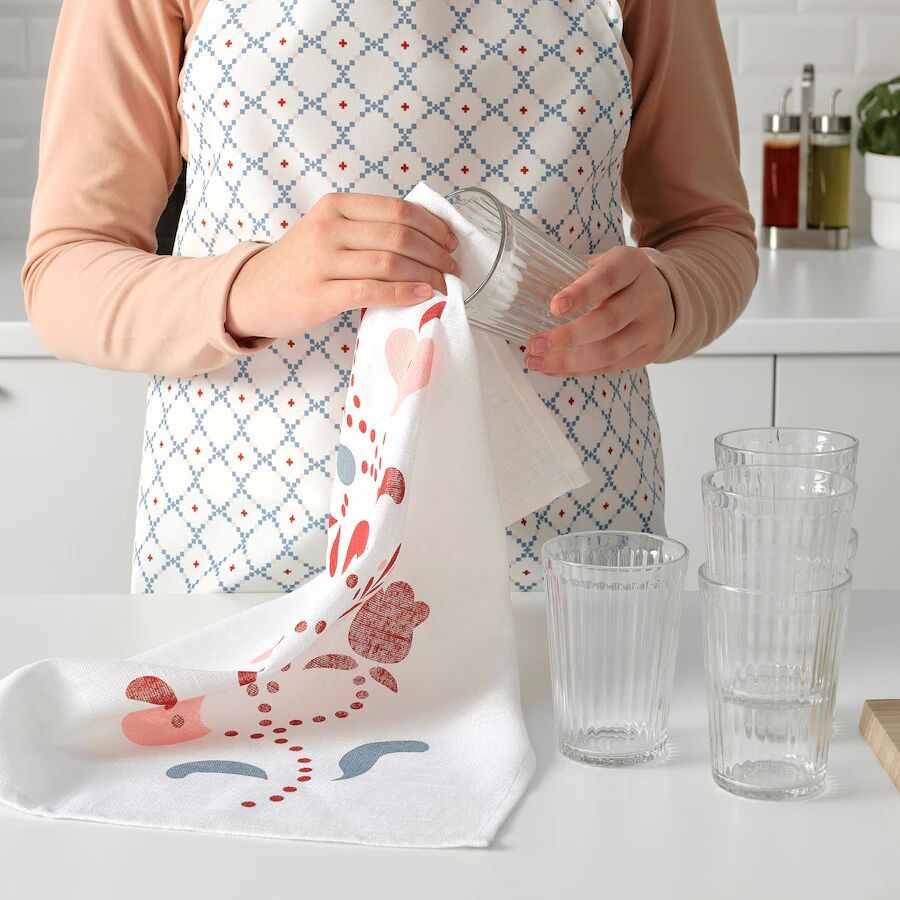 A soft and absorbent cotton tea towel with a floral pattern. Features a loop for easy hanging and is machine washable for convenience.