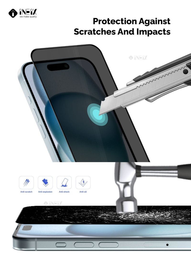 Protect your iPhone 15 Plus from prying eyes with our Privacy Premium Tempered Glass Screen Protector. Blocks 99% of side viewing Scratch-resistant surface Smooth glass feel with high touch sensitivity Easy bubble-free installation Lifetime replacement warranty Our premium tempered glass screen protector shields your phone's display from unwanted attention. The advanced privacy filter prevents others from seeing your screen, ensuring your sensitive information stays private. Enjoy peace of mind and uninterrupted use, whether you're on the go or in public. This essential accessory is a must-have for any iPhone 15 Plus owner who values their digital privacy.