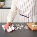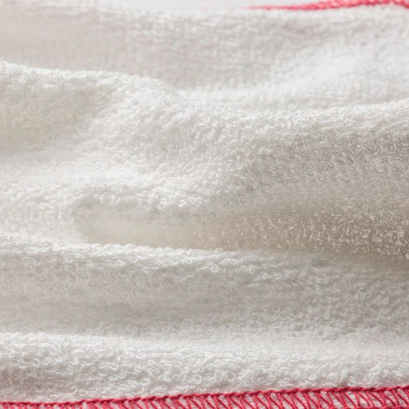 A soft and absorbent dish cloth with red piping, perfect for wiping tables and countertops. Made from 100% cotton and machine washable for repeated use.