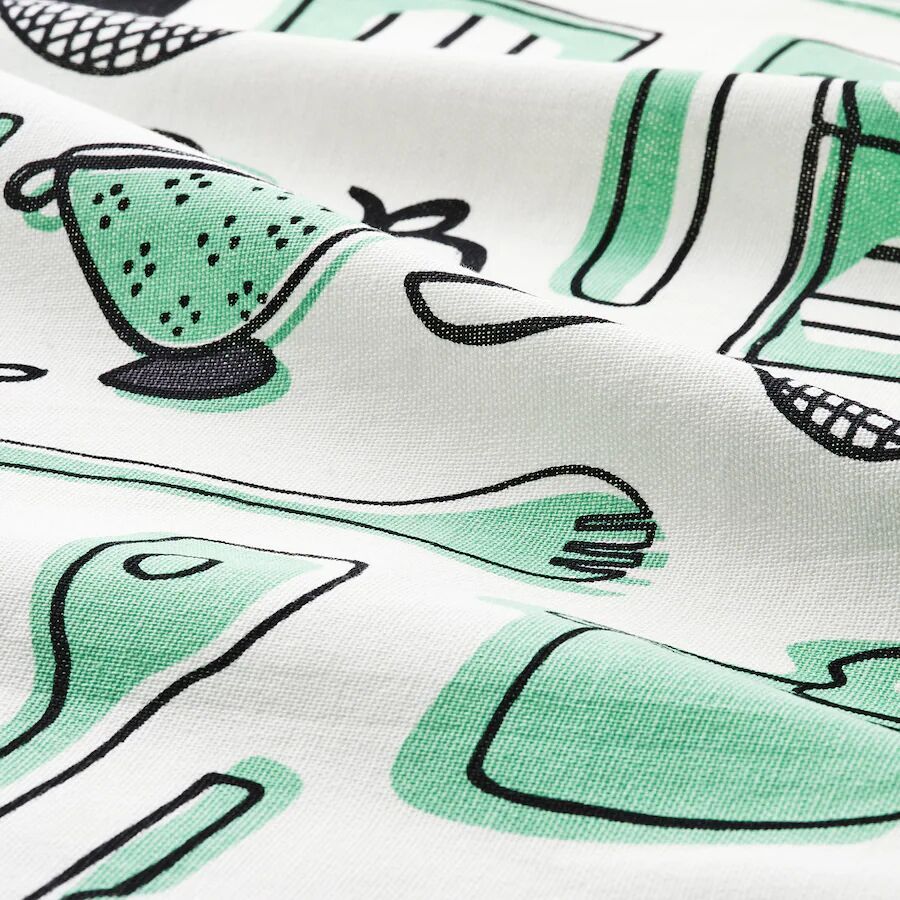 Set of 4 Cotton Tea Towels – White/Green, 45x60 cm