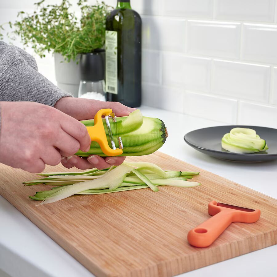 A set of 2 vegetable cutters designed to create long decorative strips effortlessly. Sharp stainless steel blades ensure precision, while the vibrant handles make them easy to find in the drawer.